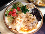tender chicken breast and cheddar cheese in a flour tortilla, served with rice, black beans, guacamole, lettuce, tomato & salasa