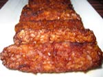 crispy slices of roasted tempeh seasoned with paprika, tamari, balsamic & garlic, goes great with crackers or any type of salad